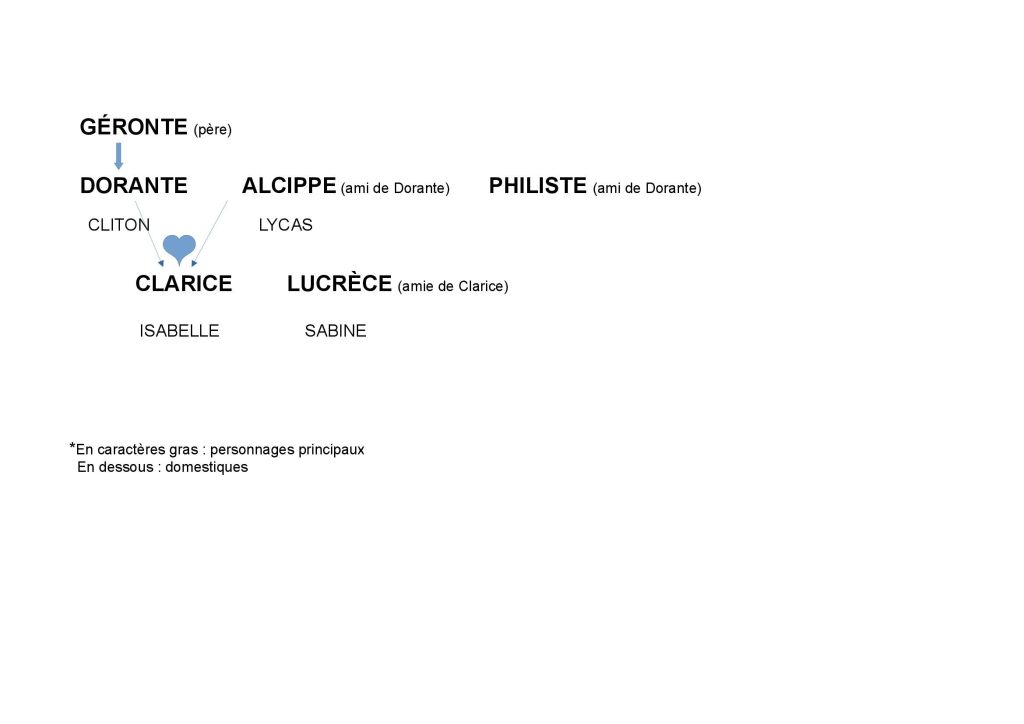 Géronte, Dorante, Alcippe, Clarice, Lucrèce, Isabelle, Sabine, Cliton